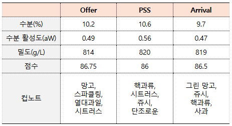 Arrival Sample: 항운/항공으로 도착한 실제 사용하게 될 커피에서 무작위로 채취한 샘플입니다.